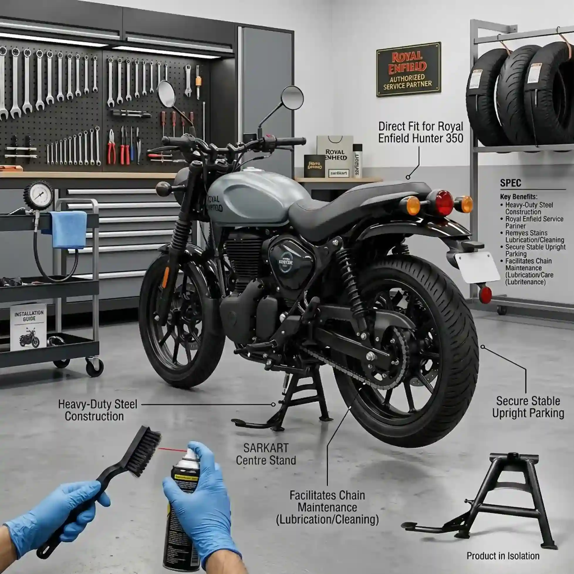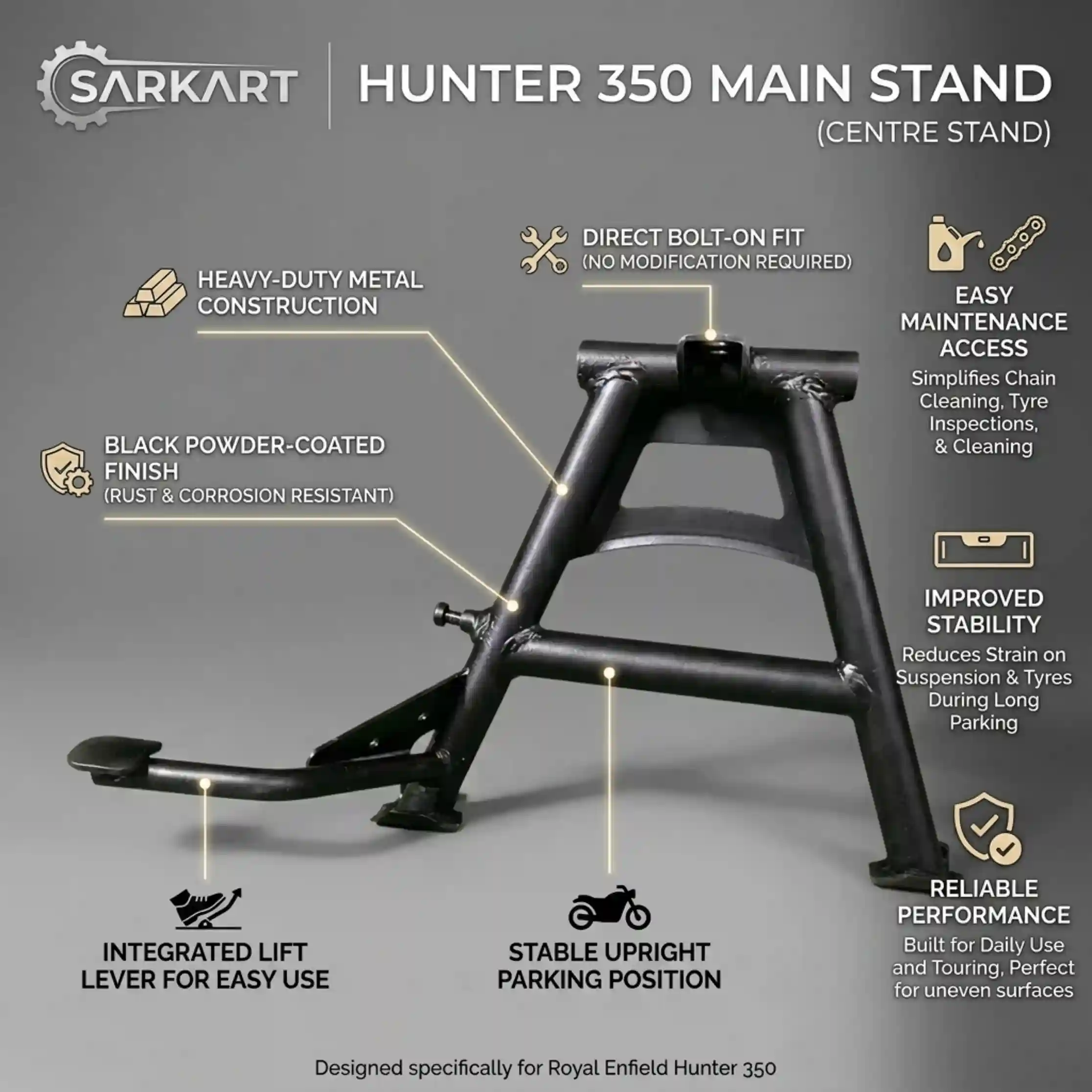 RE Hunter 350 Centre Stand – Heavy Duty Main Stand for Stable Parking & Easy Maintenance Sarkkart