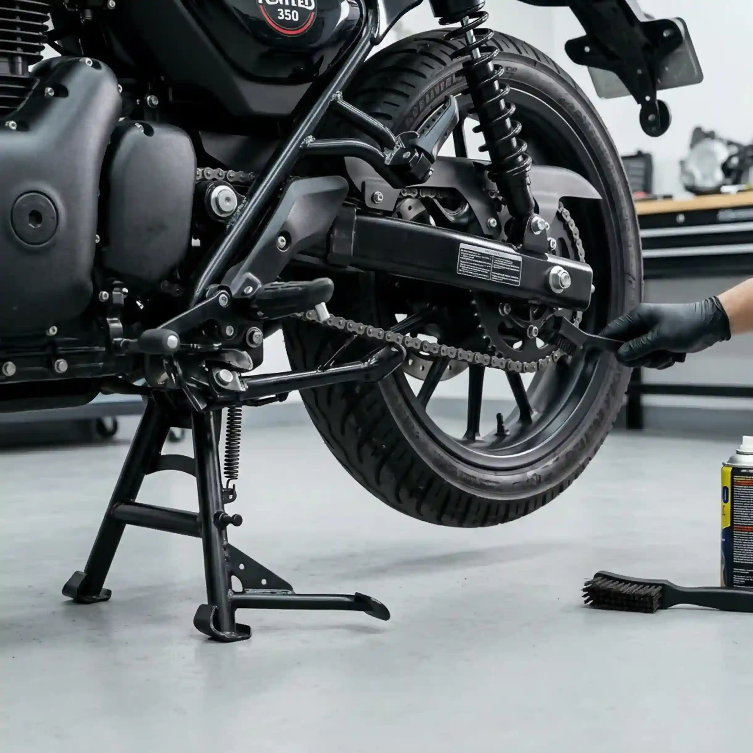 Makes chain cleaning, lubrication, tyre inspection, and bike maintenance quick and hassle-free.