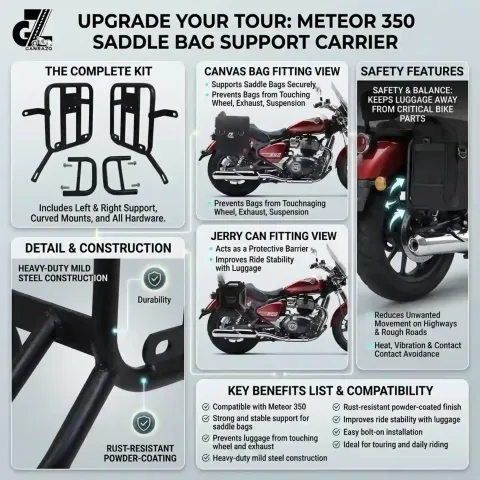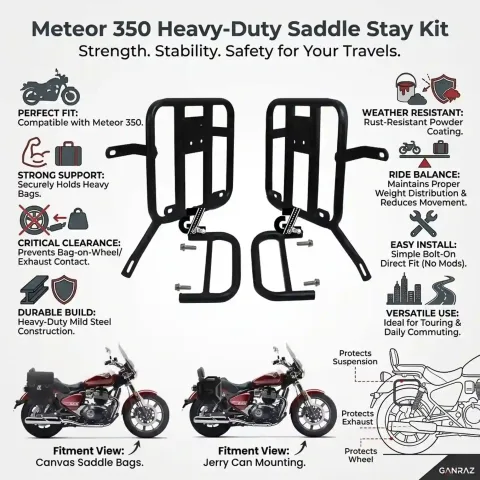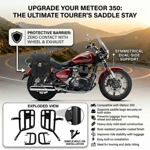 Saddle Stay for Royal Enfield Meteor 350 – Heavy Duty Metal Saddle Bag Support Frame for Touring & Luggage Stability Sarkkart