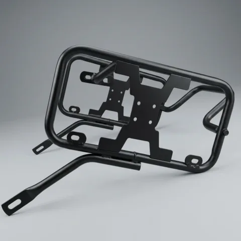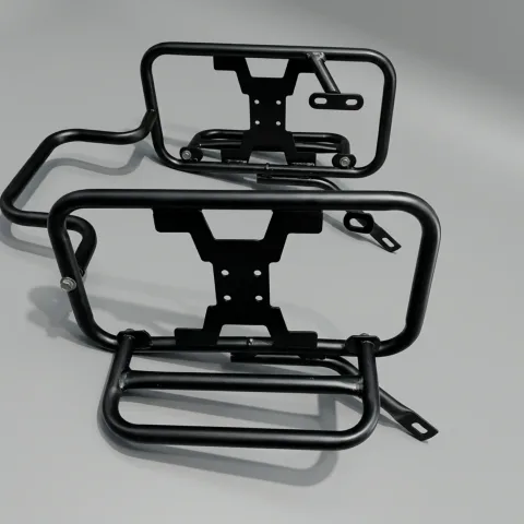 Designed specifically for the Himalayan 450, the structure ensures proper fitment and alignment without affecting the bike’s balance. It securely holds saddle bags in place, preventing them from touching the wheel, exhaust, or suspension, thus improving safety and load distribution.
